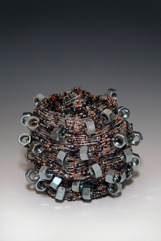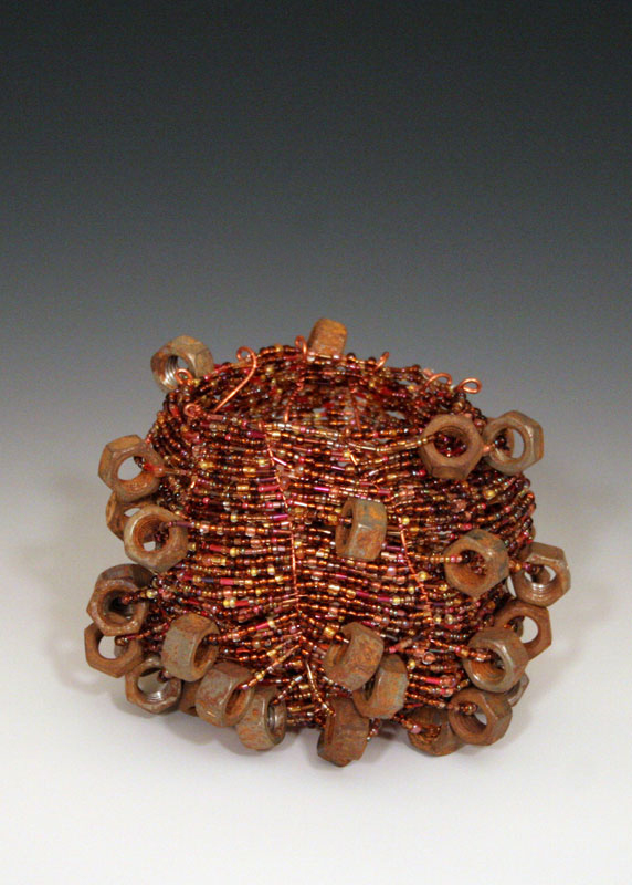 4.5" x 6" x 6" copper wire, seed beads, bolts