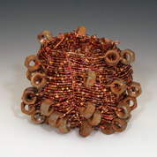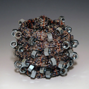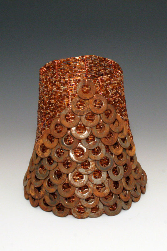 7" x 6" x 6" copper wire, seed beads, Czech glass beads, washers