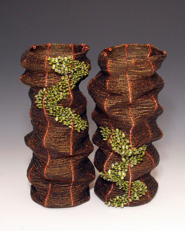 10.5" x 5" x 5" (each) copper wire, seed beads, Czech glass beads SOLD
