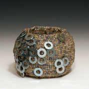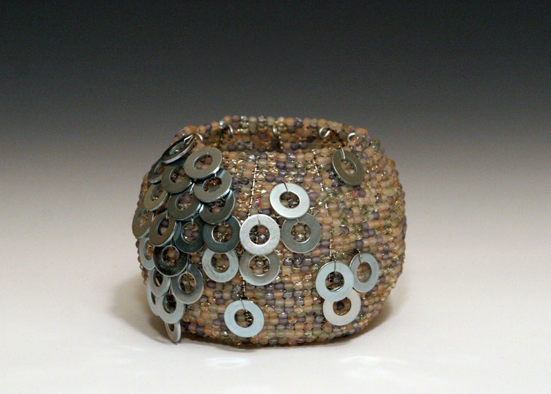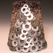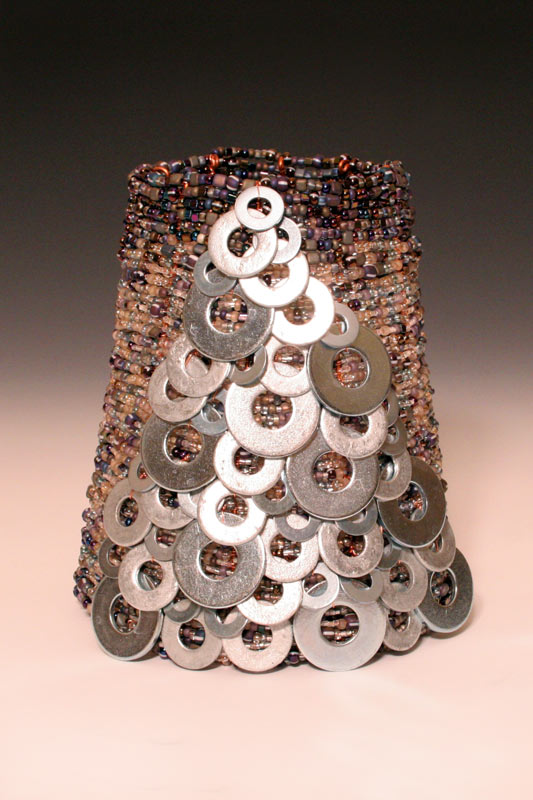 7.5" x 6.5" x 6.5" copper wire, seed beads, washers
