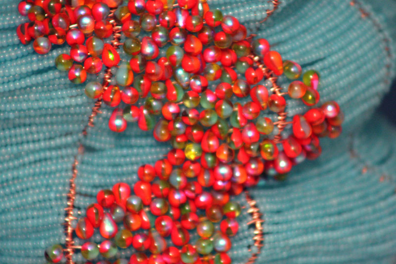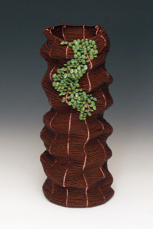 11" x 5" x 5" copper wire, seed beads, Czech glass beads SOLD