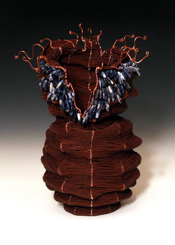 12.5" x 8.5" x 8" copper wire, seed beads, sodalite stone beads