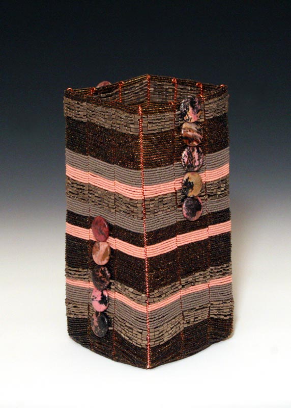 10.25" x 5" x 5.25" copper wire, seed beads, Czech glass beads, rhodonite stone beads