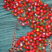 11" x 11" x 11" copper wire, seed beads, Czech glass beads