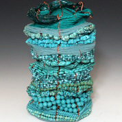 9.5" x 6" x 6" copper wire, seed beads Czech glass beads, turquoise stone beads